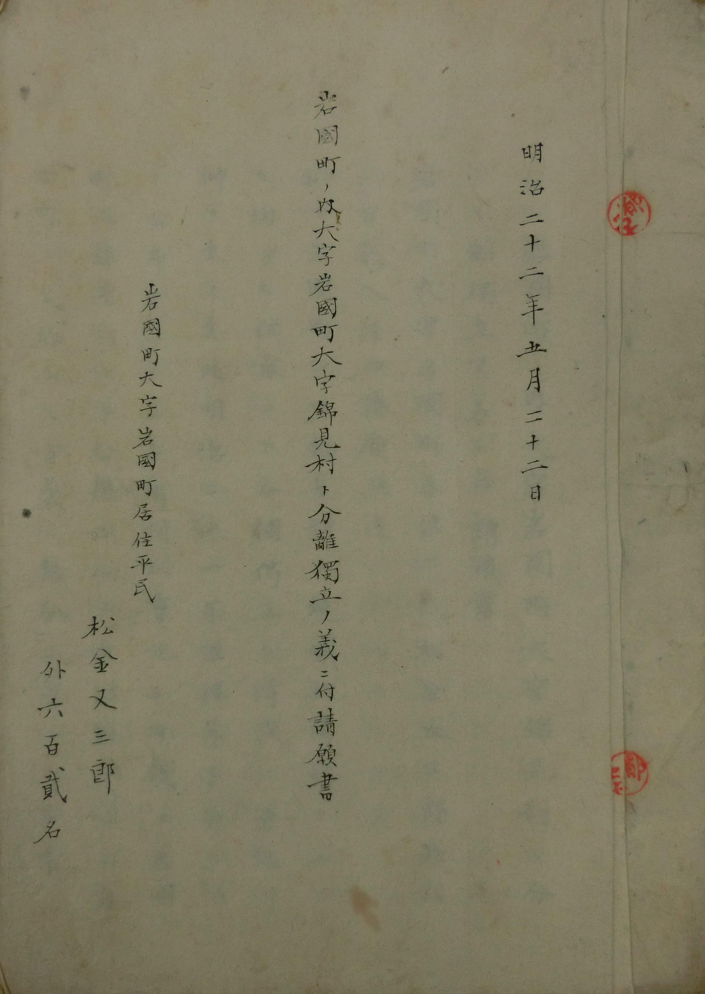 第8回資料小展示 岩国町と錦見村ー明治の市町村合併の一幕ー